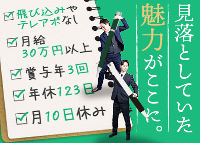 - 【直行直帰OKで効率的な働き方/OJT充実で未経験歓迎/SDGsに直結するリユース事業で、社会に貢献しながら長期キャリアを築けます】 ■業務概要 お客様の生産活動を支えるリユース資材の提案営業をお任せします。 ■業務詳細 ・既存取引先との検査基準や単価のすり合わせ ・在庫や品質の管理をしている各拠点の生産管理チームとの進捗確認 ・新規営業は、紹介や問い合わせ、リサーチで見込みのある企業に提案 <当社の特徴> ・当社の営業は月のノルマではありません。 1件の契約を結ぶまでに半年~1年以上かけて、契約後も取引先との関係を続けることが営業の仕事です。 ・新規顧客に関しては既存顧客様からのご紹介や、業界動向をリサーチしたうえで見込みのあるお客様へ当社のリユースシステムのご提案を行うため、無理な飛込や架電は不要です。 ・リユース商品を循環的にお客様に提供しており、その都度在庫状況が異なります。そのためお客様のニーズと倉庫状況のバランスを先読みした提案が求められます。 <商材について> 半導体メーカーが使用する輸送用容器を回収し、洗浄・再利用して販売する仕組み。環境負荷低減に直結するビジネスです。 この仕事を通じて、循環型社会の実現に貢献しながら、顧客から頼られる営業として誇りを持てます。 ■組織構成 本社9名。今回配属予定のチームは40代のマネージャー1名と連携しながら業務を進めます。中途入社率は9割以上で、異業種出身者も活躍中。意見を出しやすい風通しの良い社風です。 ■働き方 全国出張は月2~3回(2泊3日程度)ありますが、直行直帰OKで効率的な働き方が可能。残業は月5時間以内、年間休日127日とプライベートも充実できます。 ■教育体制 入社後は先輩との同行営業からスタート。OJTを通じて業務を習得できます。未経験入社の実績もあり、安心して成長できる環境です。 ■新規案件インセンティブ 社内の案件契約条件を達成した月の次の賞与にて、インセンティブ額を加算して支給します。※支給条件や金額の算出方法は社内のインセンティブ制度に基づきます ■企業の特徴 創業60年の安定基盤に加え、SDGsに直結する事業で社会的意義も高い会社です。社員の声を積極的に取り入れる風土があり、長期的にキャリアを築けます。 変更の範囲:本文参照