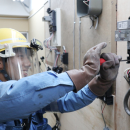 ・当社の尼崎技術訓練センターにある模擬設備で実技訓練