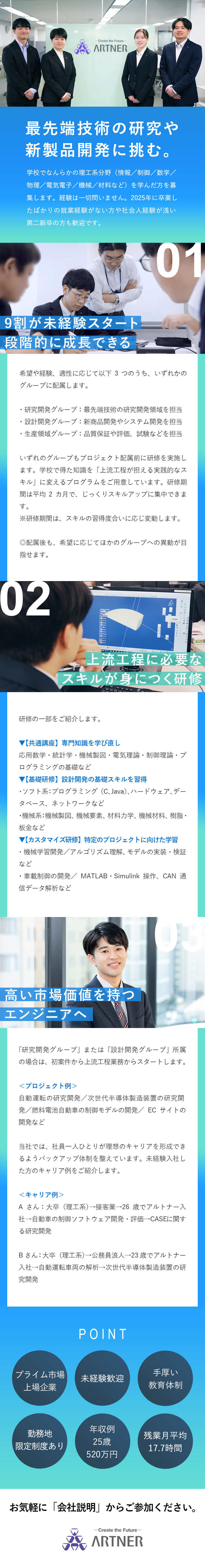 このような社会人経験がない方でも、理工系卒であれば広く受け入れているアルトナー。理工系の学校で得た知識を「実践力」に変える質の高い研修があり、初配属から上流工程業務ができる技術力が身につきます。