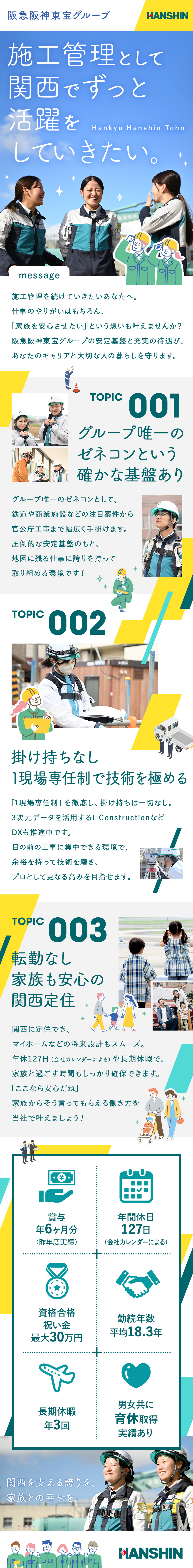 【大阪・北区梅田/転勤無】土木施工管理/勤続年数18.3年/阪神電鉄100%子会社企業/年休127日