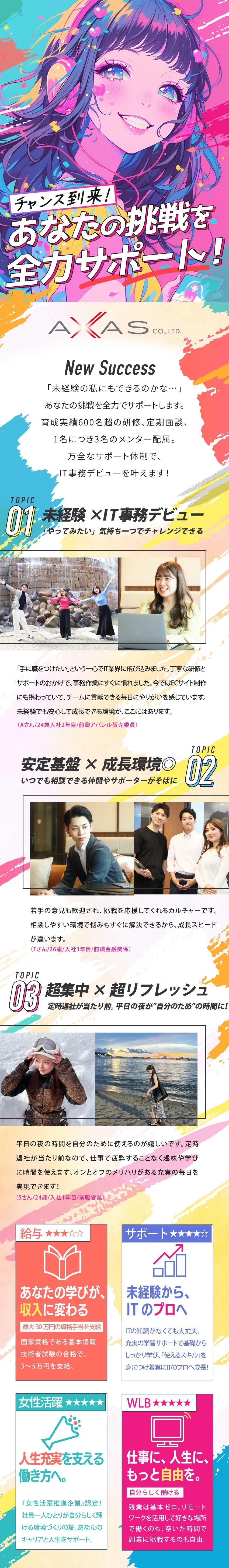 《IT事務/未経験から手に職をつけた自分に成長》働きやすさ&研修&サポート環境は四つ星以上の満足度