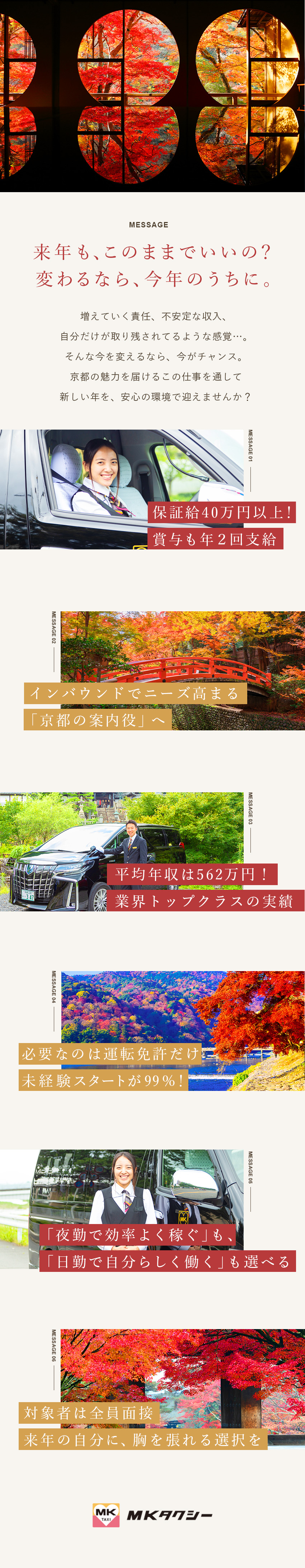 2024年3月から年2回の賞与制度もスタートさせ、社員の待遇改善にも力を入れているエムケイ。近年は国内だけでなく、海外からの観光客も増え、2024年度は過去最高売上を記録し、社員一人ひとりも安定した収入を確立しています。
