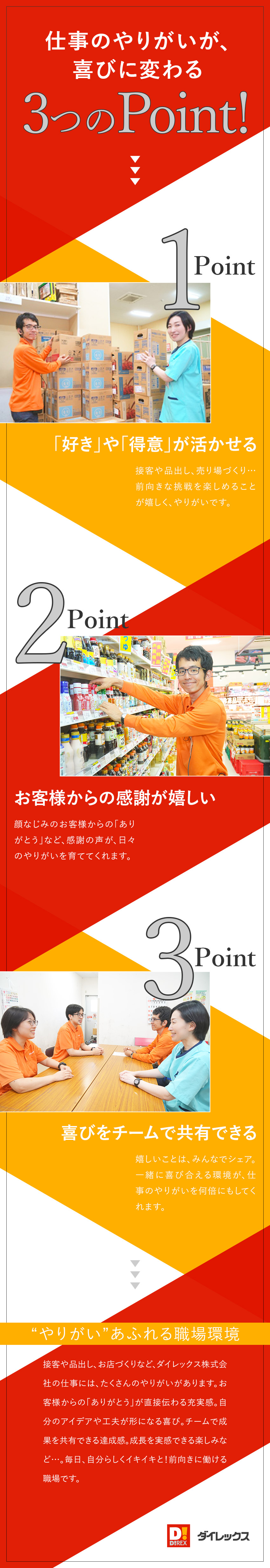 あなたの「得意」がそのまま強みになる!ディスカウントストア「ダイレックス」の店舗運営をお任せします