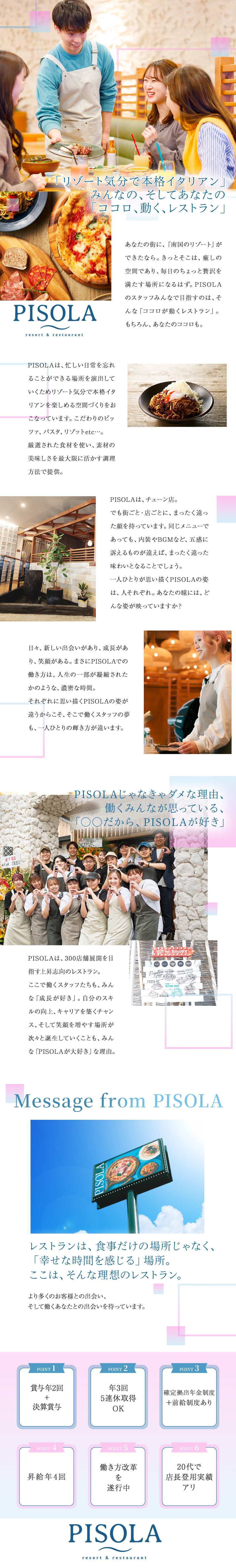 PISOLAの店長候補・店舗スタッフ/未経験OK!完休2日制