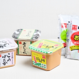 普段見かけるパック味噌だけでなく、業務用の味噌や、即席味噌汁などの加工品も作っています。