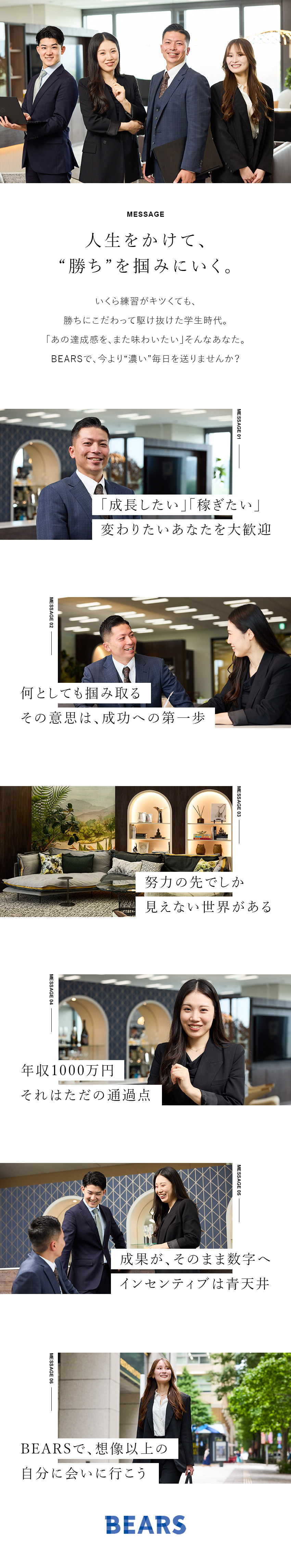 誰よりも、自分の成長を本気で願ってくれる人ばかりの環境だと日々感じています。BEARSに入社しなければ見えなかった世界を知れて、成長できていることを嬉しく思います!
