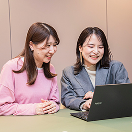 入社後は、業界・職種の基礎から学べる研修が充実しているので、安心してスタートできます◎ 先輩や上司とも話やすい距離感なので、困ったことや不安なこともすぐに相談できる環境です!