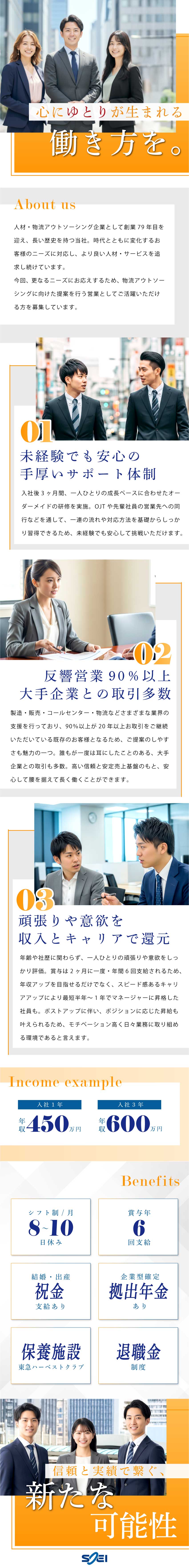 人材サービスの営業/物流のアウトソーシング提案/賞与年6回