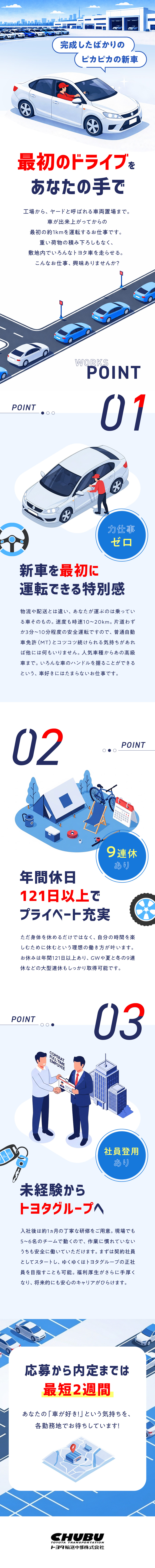 新車移動ドライバー/普免のみ&未経験OK/正社員登用あり