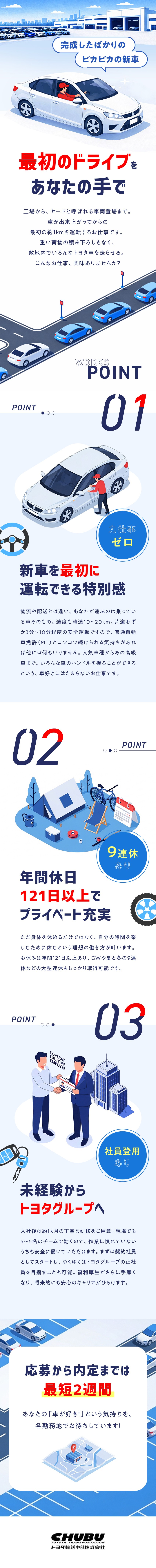 新車移動ドライバー/普免のみ&未経験OK/正社員登用あり