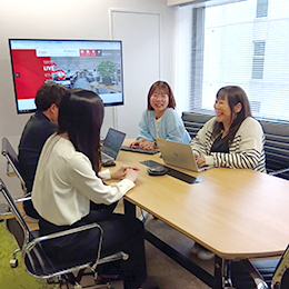 席が固定されていない「フリーアドレス制」のため、日によって異なるメンバーとの部署を超えた雑談や交流が活発!話しやすい雰囲気がベースにある分、何かあっても気兼ねなく相談できる環境です。