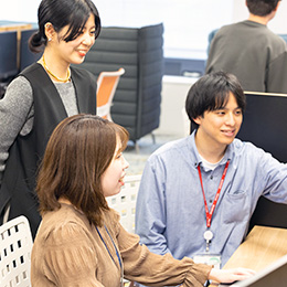 ▼実際のチームへ配属後、先輩社員によるOJT研修のもとで作業を進めながら、社内ツールや運用方法を習得