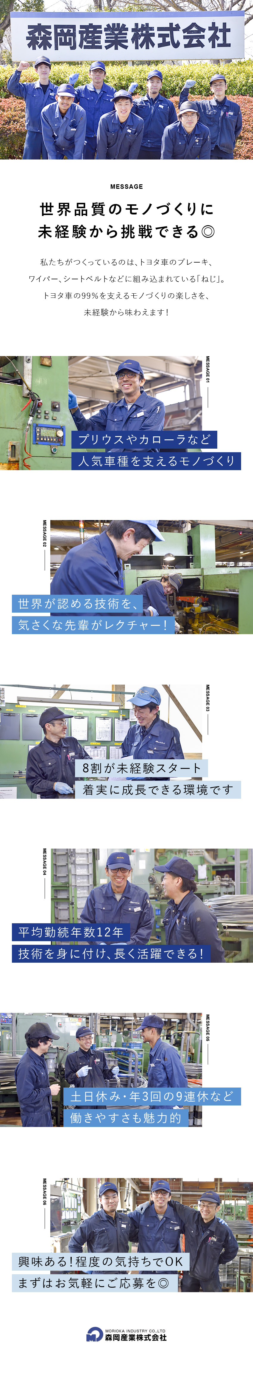 金属部品の機械オペレーター/未経験歓迎/年3回9連休/土日休