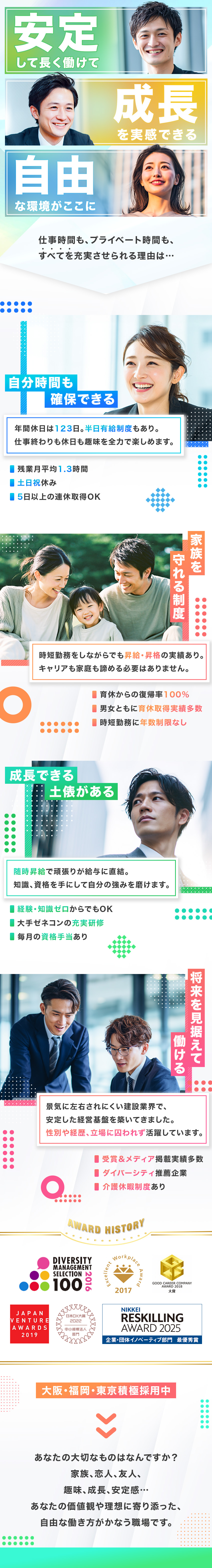 建設アシスト/未経験歓迎/基本定時退社/年間休日123日