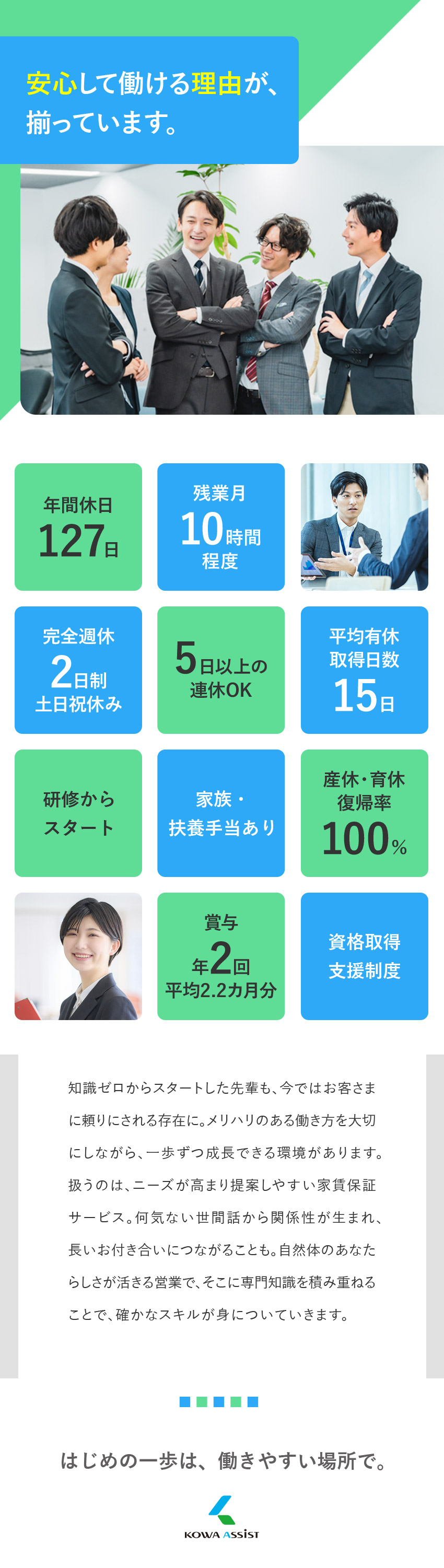 家賃保証サービスの営業/年休127日/残業月10h/経験不問