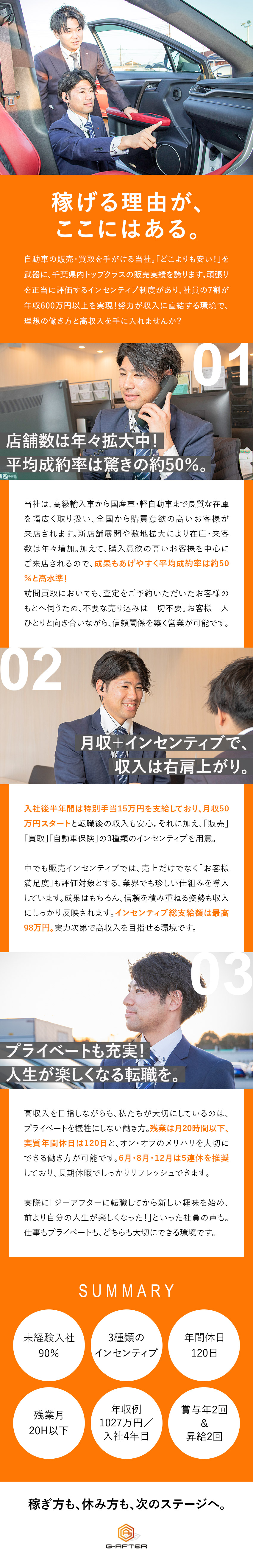 【千葉県千葉市】中古車の販売・買取/車好き必見/残業は20~30時間程/年間休日115日