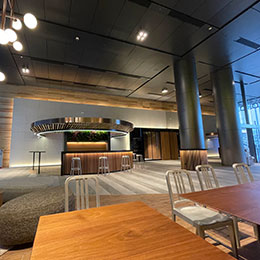 リニューアルされたおしゃれなエントランス。本社は「新横浜駅」から徒歩約3分と、通いやすさも魅力です。