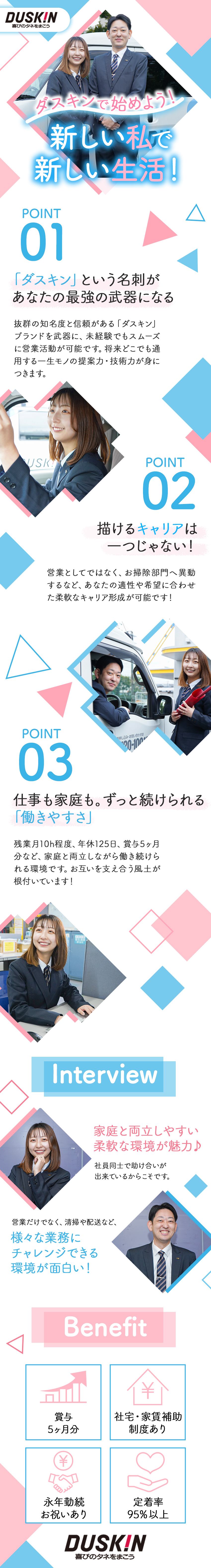 新年度には「頼れる先輩」へ!ダスキンの安定基盤で、未経験から一生モノの提案力・技術力を