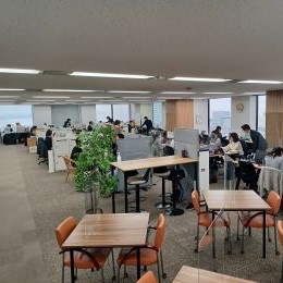 しきりがなく広々とした空間のオフィス。わからないことがあれば上司や先輩にすぐに質問できる環境です。