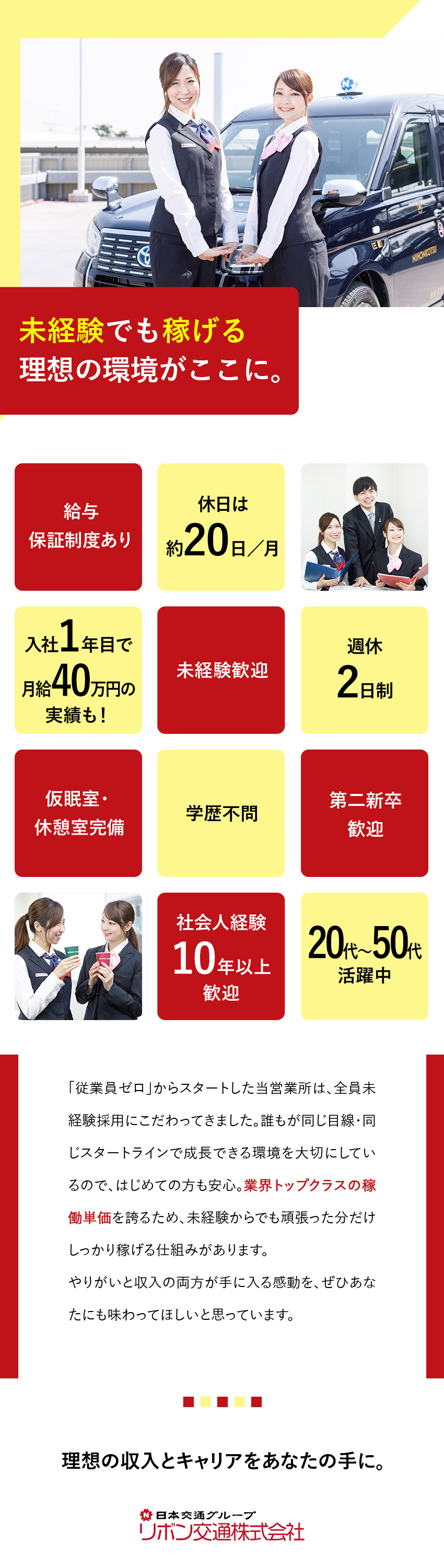 また、日本交通グループの安定性のもと、未経験からでも高収入を実現できるのもリボン交通ならではの魅力でしょう。