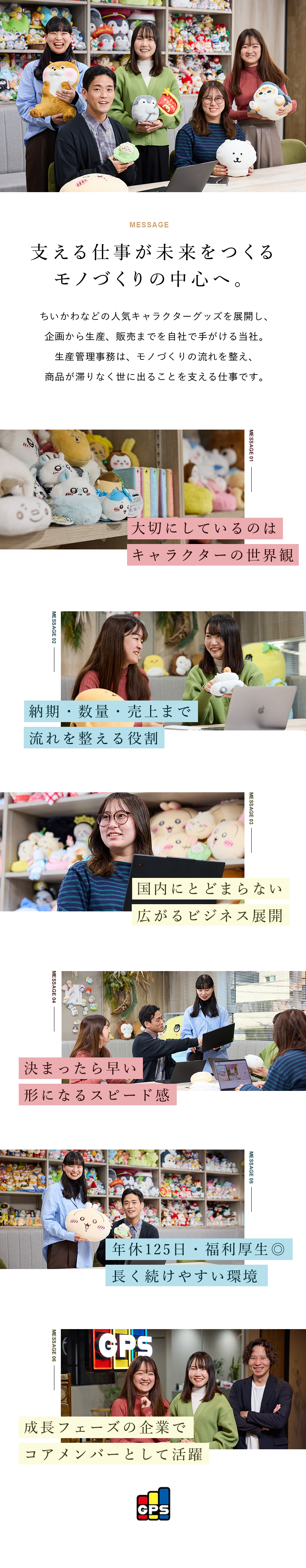 【生産管理】★『ちいかわ』等キャラクターグッズを手掛ける企業/年休125日/土日祝休