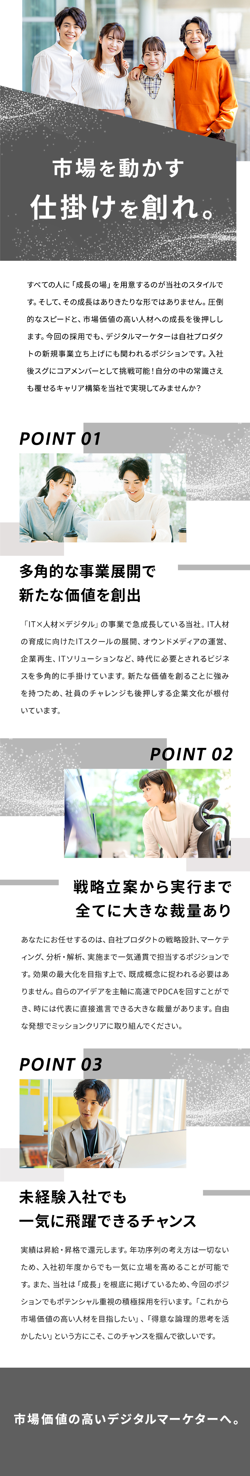 戦略設計から実行、ブランドイメージの強化まで、デジタルマーケティングを一気通貫で担当できます!