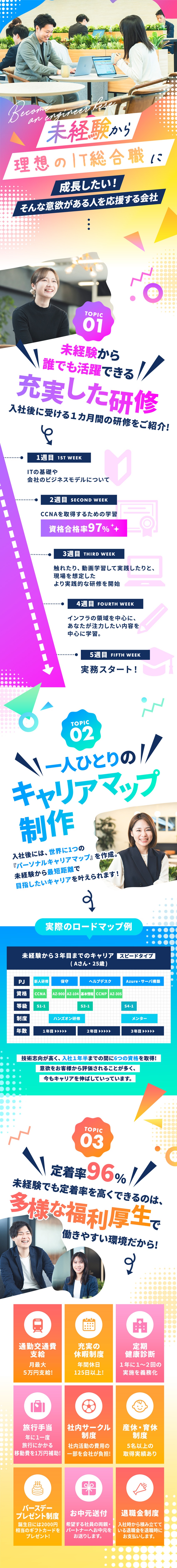 【未経験歓迎】入社1ヶ月間の集中研修!ITの基礎から学べるので安心|配属後も多彩なキャリアで成長