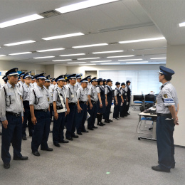 研修では警備業務の基礎、警棒や消火栓の基礎から、接遇教育、救命講習など学びの機会も定期的にあります。