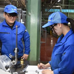 その後は配属先工場にて、先輩社員のOJTで業務を覚えていただきます。道具や機械の使い方、製品知識などの基礎から丁寧に教えますのでご安心ください。製造した部品は必ずダブルチェックして、不良品が発生しないようにしています。