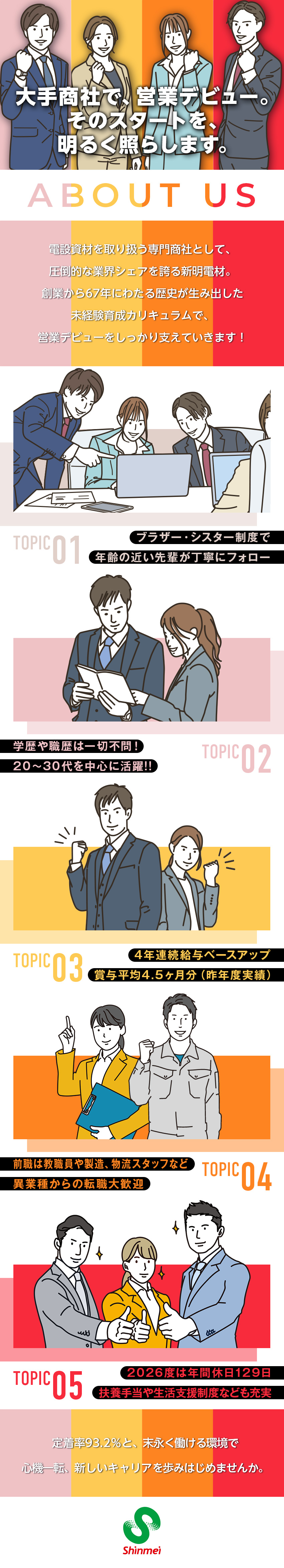 電設資材のベストパートナーとして、圧倒的な業界シェアを誇る専門商社です。 未経験入社割合は8割!