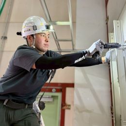 ・先輩と一緒にケーブルをまとめたり、器具を取り付ける補助