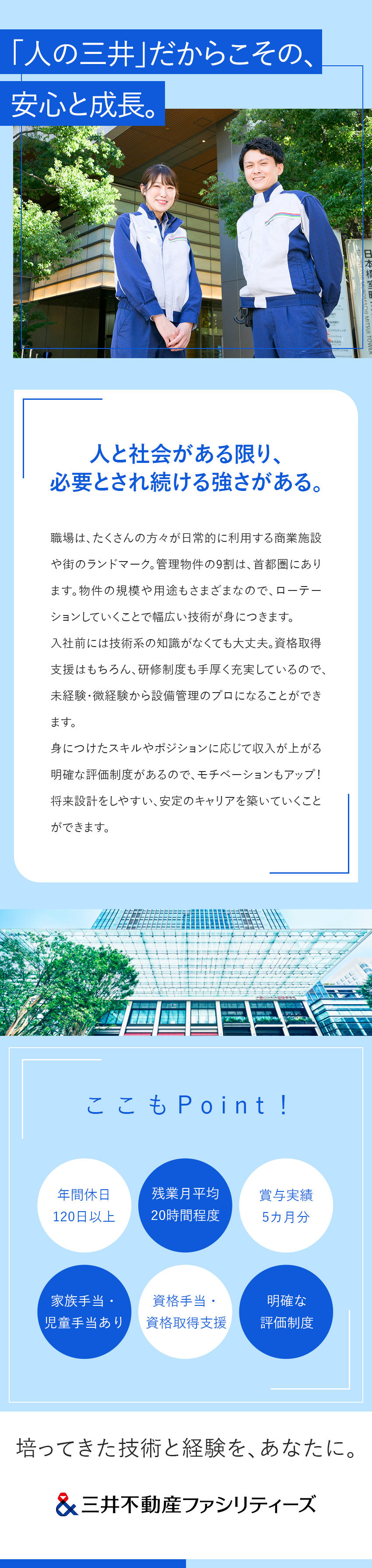 首都圏 ★三井不動産G/ポテンシャル採用★【ビルの設備管理】 充実の研修制度完備/有名物件多数あり