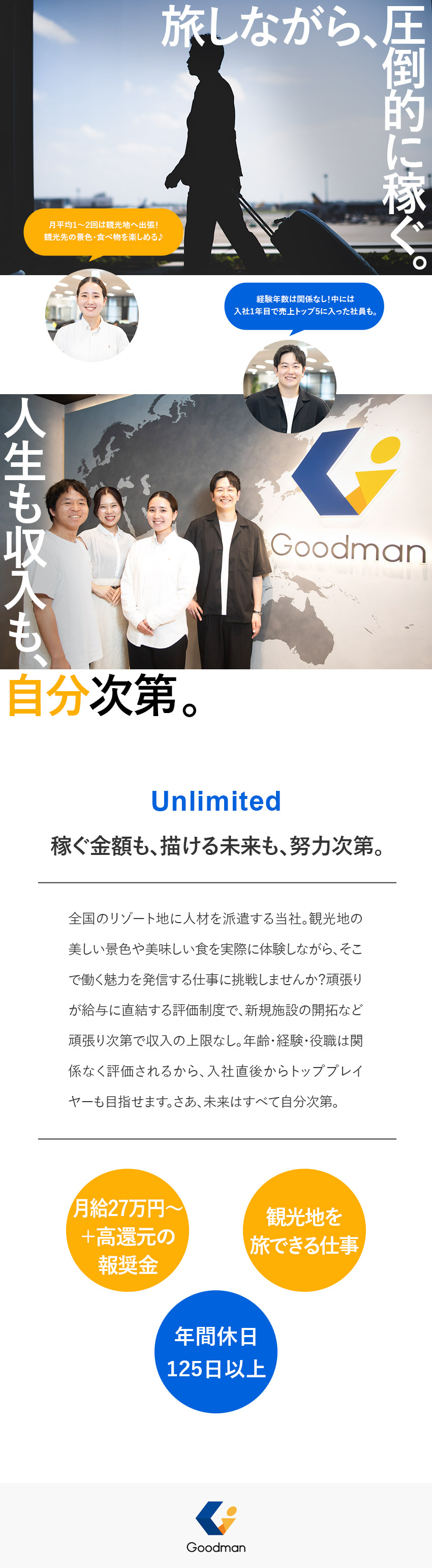 休みが充実しているので私生活も大切にでき、『報奨金制度』で収入面も安心。さらに、観光業という今まさに追い風を受ける業界ですので、将来性も抜群。長く、安定して働くには、ピッタリの場所です!