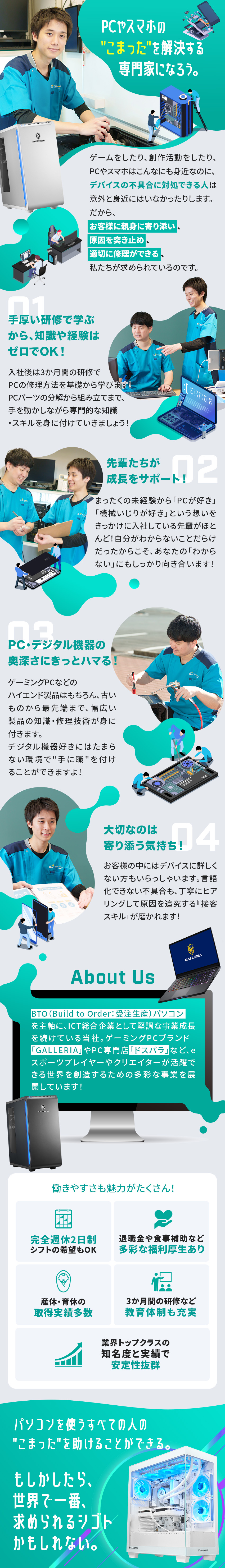PC専門店のサポートスタッフ/未経験歓迎/家賃・食事補助あり