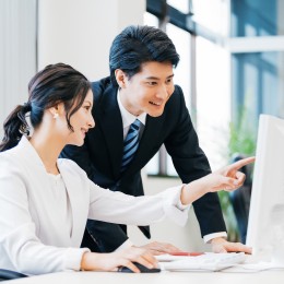 OJT形式にて先輩社員と一緒に、専用システムの使い方など