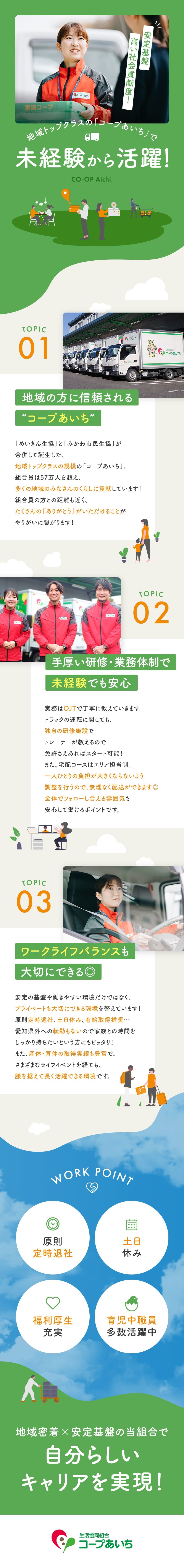 生協のルート配送/未経験歓迎/土日休み/愛知県外への転勤なし
