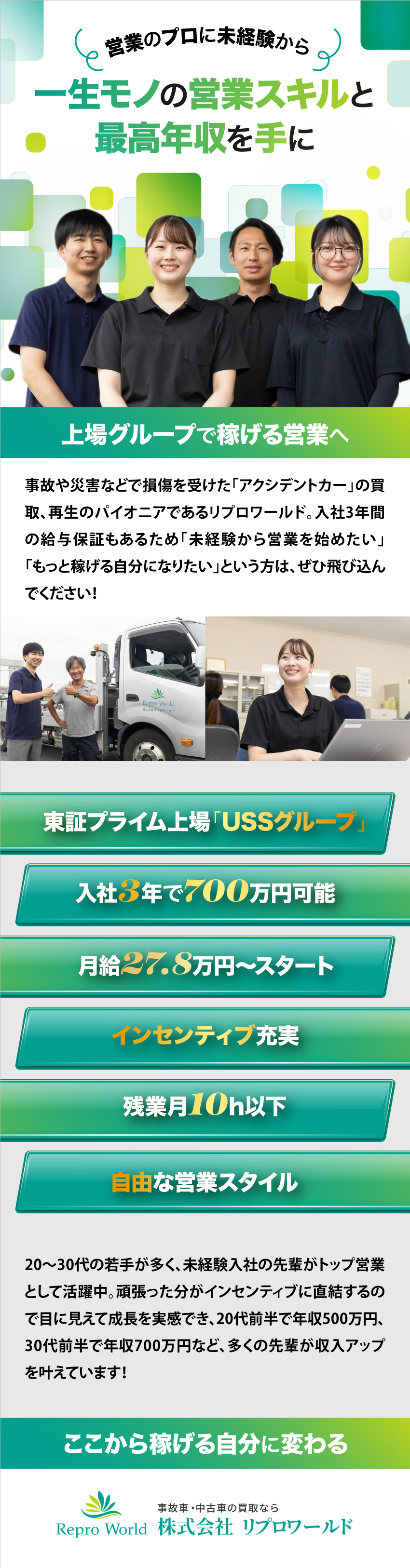 「稼ぎたい」という想いがある方や、地道に努力を継続できる方は大歓迎!車の知識がなくても、研修や日々の積み重ねで知識やスキルを増やしていくことができるため、意欲があれば活躍できる環境です。