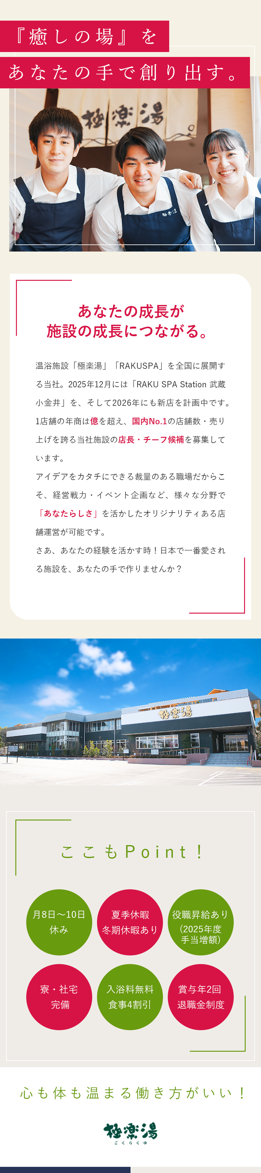 全国の『極楽湯』又は『RAKU SPA』の直営店勤務
