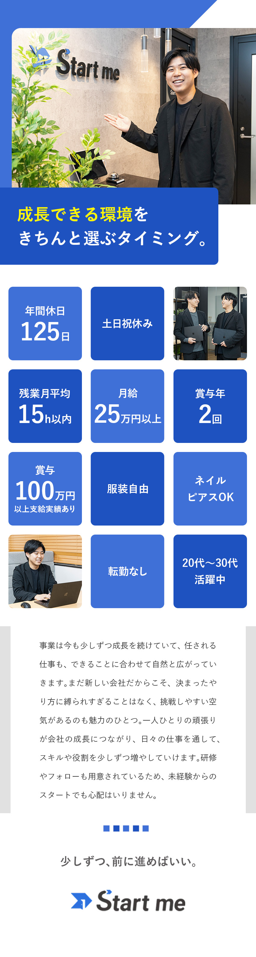 総合職/年休125日/月給25万円以上/賞与・昇給年2回
