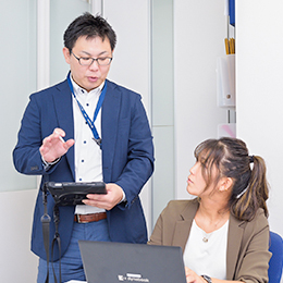 未経験入社で活躍してきた先輩が教育担当です。新人の不安な気持ちに寄り添ったサポートを心がけています!