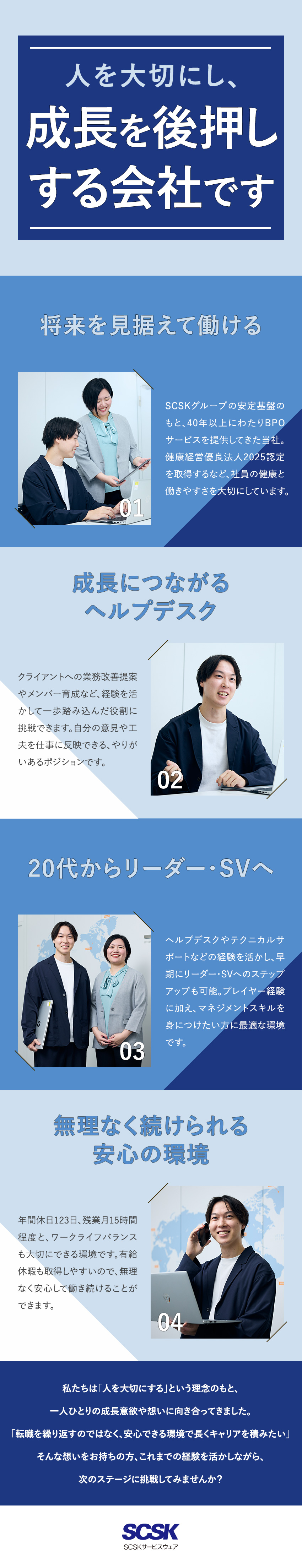 テクニカルサポート<リーダー候補>◆SCSKグループ/健康経営優良法人2025認定/年休123日