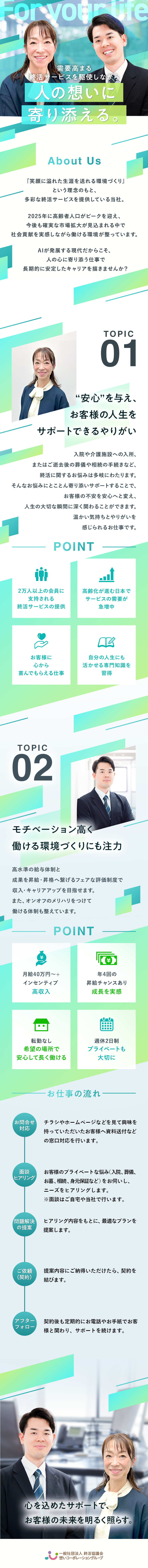 『終活』という人生に欠かせない分野のサービスで、社会に貢献できるやりがいを実感できます。