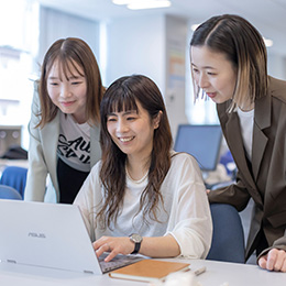 多くの女性が活躍中。営業会議や研修、メディア会議などディスカッションの場もあります。