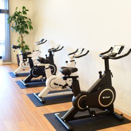 スタッフの働きやすさや健康に配慮した福利厚生や設備も充実。休憩スペースにはトレーニングマシーンも!