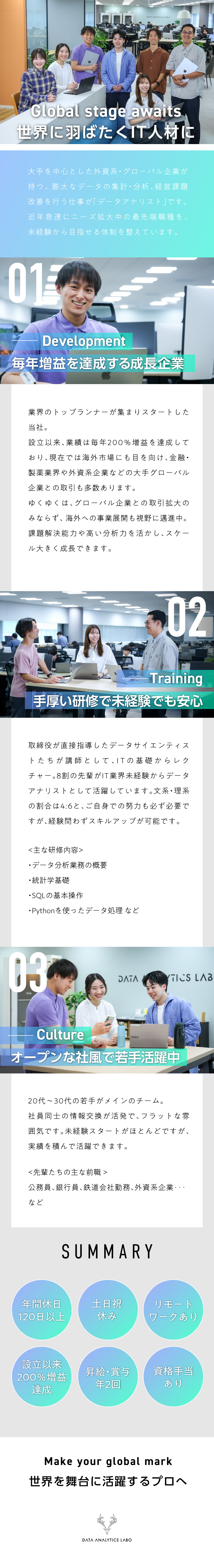 <未経験からデータ分析・ITのプロフェッショナルへ!>文理不問★異業種からの中途入社メンバー活躍中!