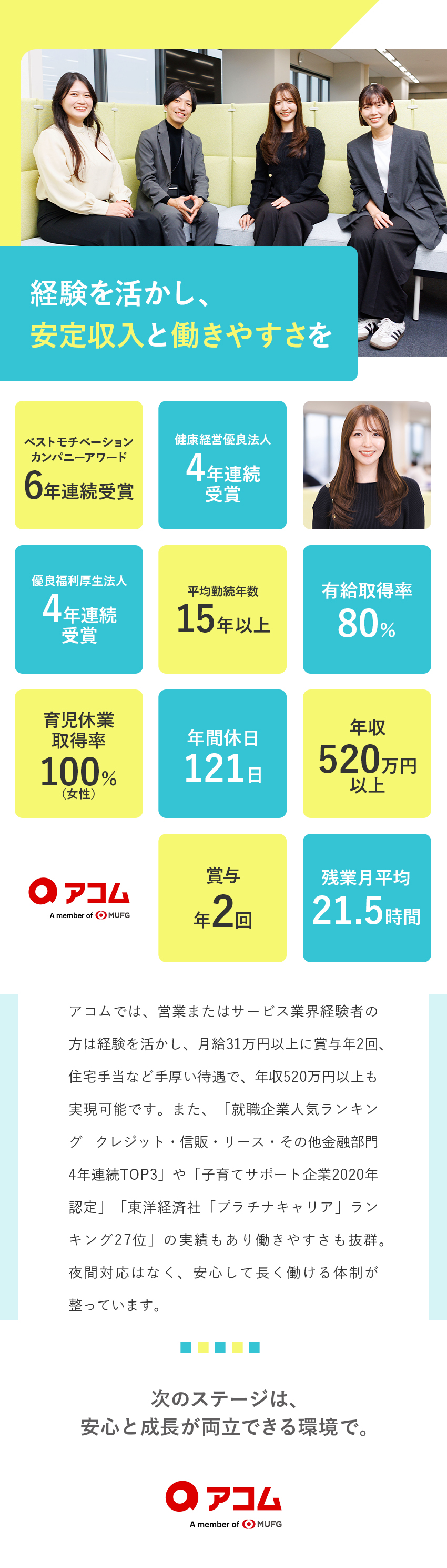 〈営業経験者歓迎!〉【横浜】内勤営業 ※年収500万円~/土日祝休/三菱UFJG/WEBで選考完結