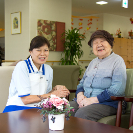 入居者さまの「第2の家族」のようなポジションで信頼関係を築けるのが魅力。実際に「寄り添った介護ができる・してもらえる」と高い評価を受けています。