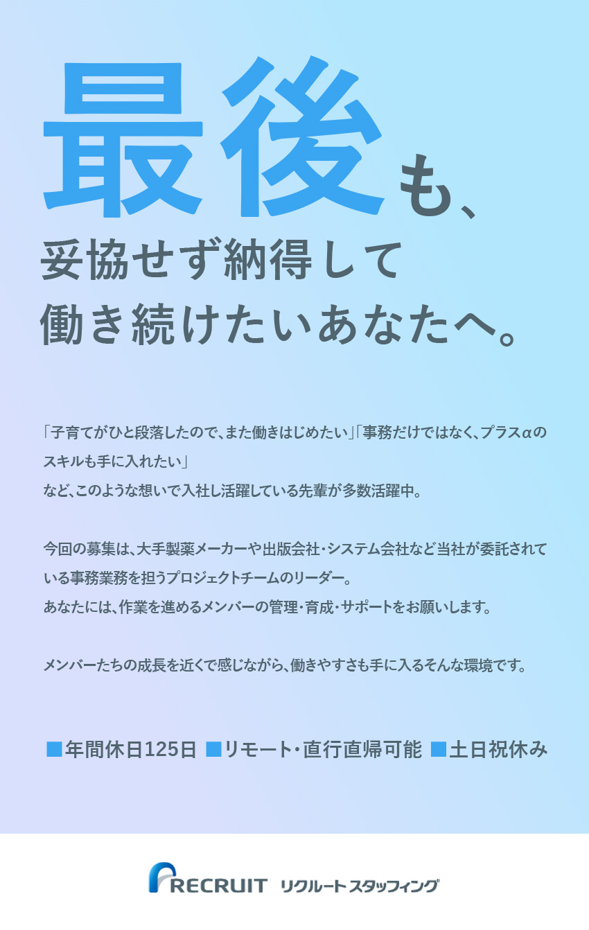 NEW事務プロジェクト運営リーダー/40代活躍中/年間休日125日