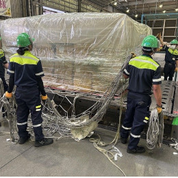 組付を行った貨物を、荷崩れや汚れ、雨などから守るためにビニールネットで梱包します。規定を満たしているか、輸出できる状態に仕上がっているか、などを確認します。
