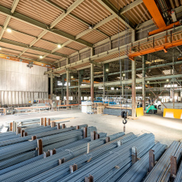 座間工場では、住宅用ユニット鉄筋の加工を行い、精密さと効率性を両立した生産体制を構築。